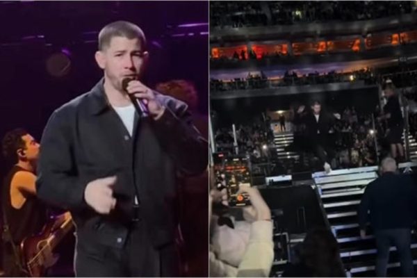 Midway through the performance, an audience member allegedly aimed a laser directly at Nick’s head, prompting him to bolt off stage for safety.