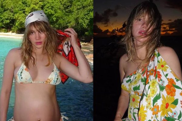 Suki Waterhouse flaunts her baby bump in sheer ‘wet look’ outfit