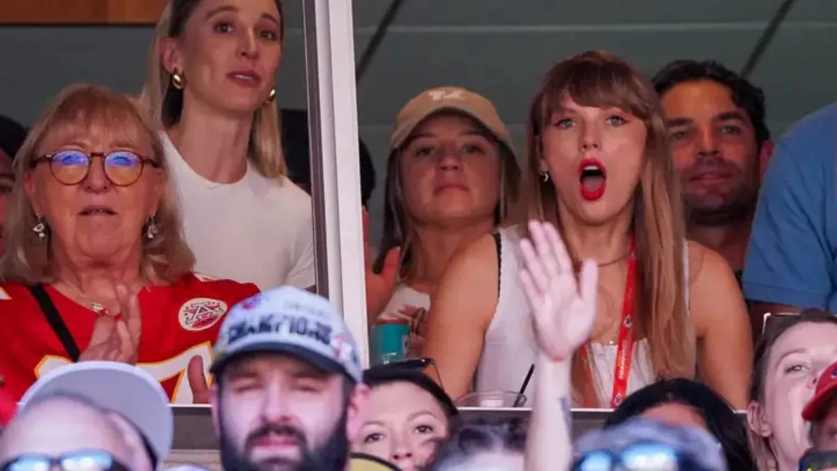 Taylor Swift jumped from her seat after she witnessed her boyfriend being pushed and thrown during the Kansas City Chief’s winning game against New England Patriots.