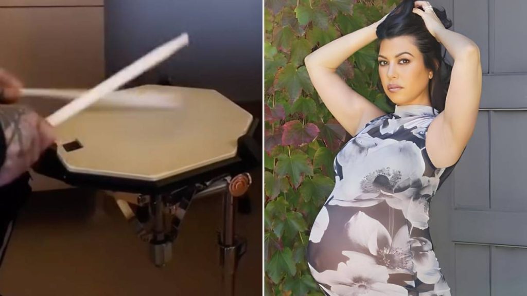 Barker drummed along to the fetal heartbeat monitor in the delivery room, while Kardashian was getting ready to give birth.