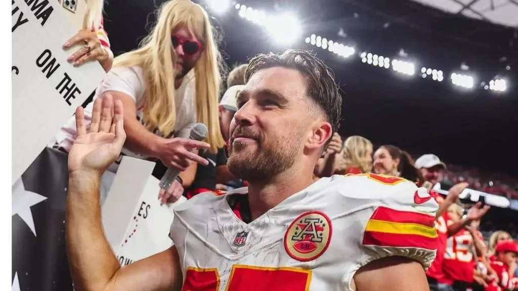 Kansas City Chiefs star Travis Kelce shared a special post-game celebration with fans, some of whom showed up in full Taylor Swift-inspired outfits, following the Chiefs’ 27-20 victory over the Las Vegas Raiders on Sunday at Allegiant Stadium. The game marked a standout moment for Kelce, who scored his first touchdown of the season, leading to an enthusiastic fan engagement featuring nods to his relationship with Swift.