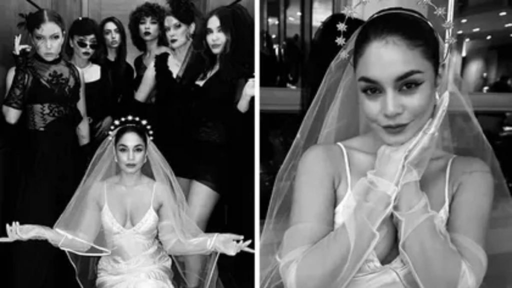 The 34-year-old took it to her Instagram to share series of pictures with caption, “Love a theme night. Can you guess what it was?” The post featured her bridesmaid including Sarah Hyland, who commented, “Dress code: All Black for the Bride in White.”