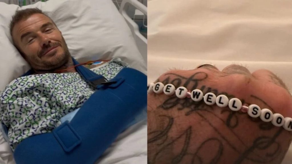 David Beckham is recovering after a recent injury that required hospitalization, as revealed by his wife, Victoria Beckham, in a June 27 Instagram Story. The photo showed the 50-year-old former footballer lying in a hospital bed with his right arm in a sling, wearing a hospital gown and flashing a smile despite the apparent discomfort. Victoria captioned the picture with a simple but affectionate message: “Get well soon daddy,” reflecting the close-knit nature of the Beckham family, which includes their four children—Brooklyn, Romeo, Cruz, and Harper.