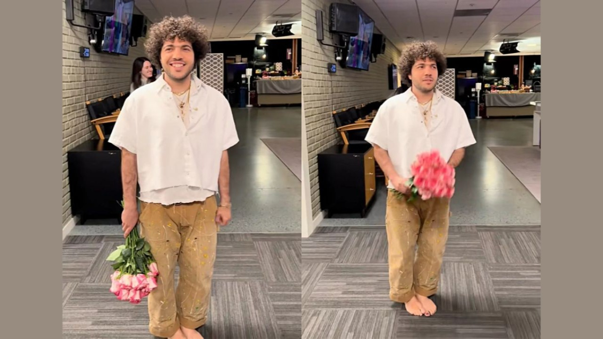 The TV appearance comes just weeks after the couple dropped their joint album I Said I Love You First, featuring tracks like “Sunset Blvd” and “Call Me When You Break Up.” With his golden toes and golden sense of humor, Benny proved you don’t need shoes to make a big impression.