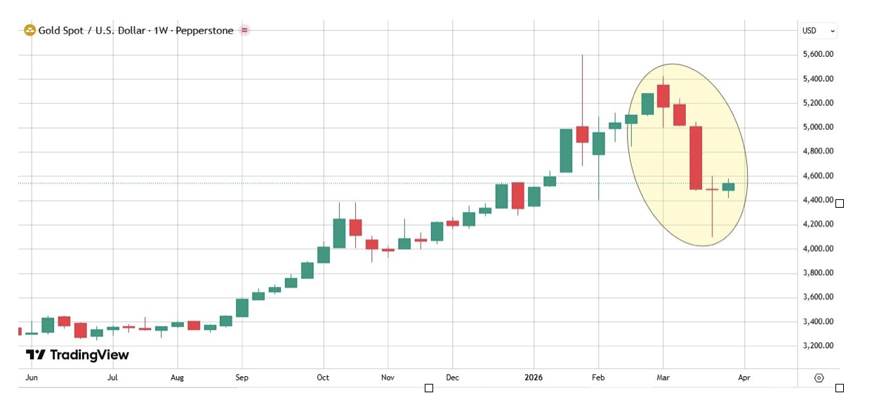 In late March, gold spot prices fell to around $4,570, representing a loss of 21% compared to the all-time high of $5,589 set in January. The price decline began to accelerate in late February when U.S.-Israeli airstrikes on Iranian territory resulted in the closure of the Strait of Hormuz and pushed Brent crude to a new record high of over $120 per barrel.
